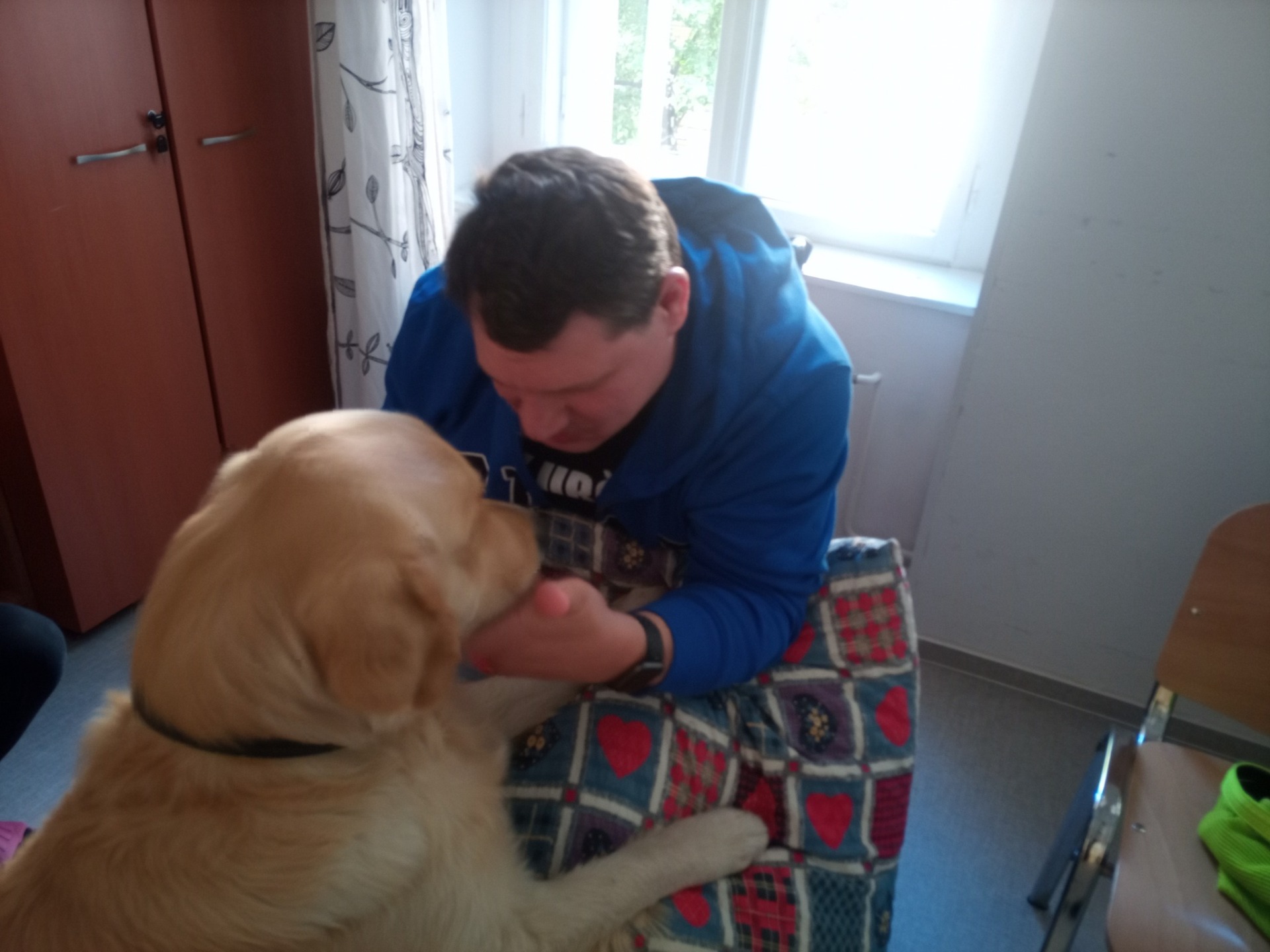 Coco je klidná a trpělivá fenka, která dochází do stacionáře a do školek, včetně speciálních. Svou přítomností přináší radost, úsměv a pocit bezpečí.